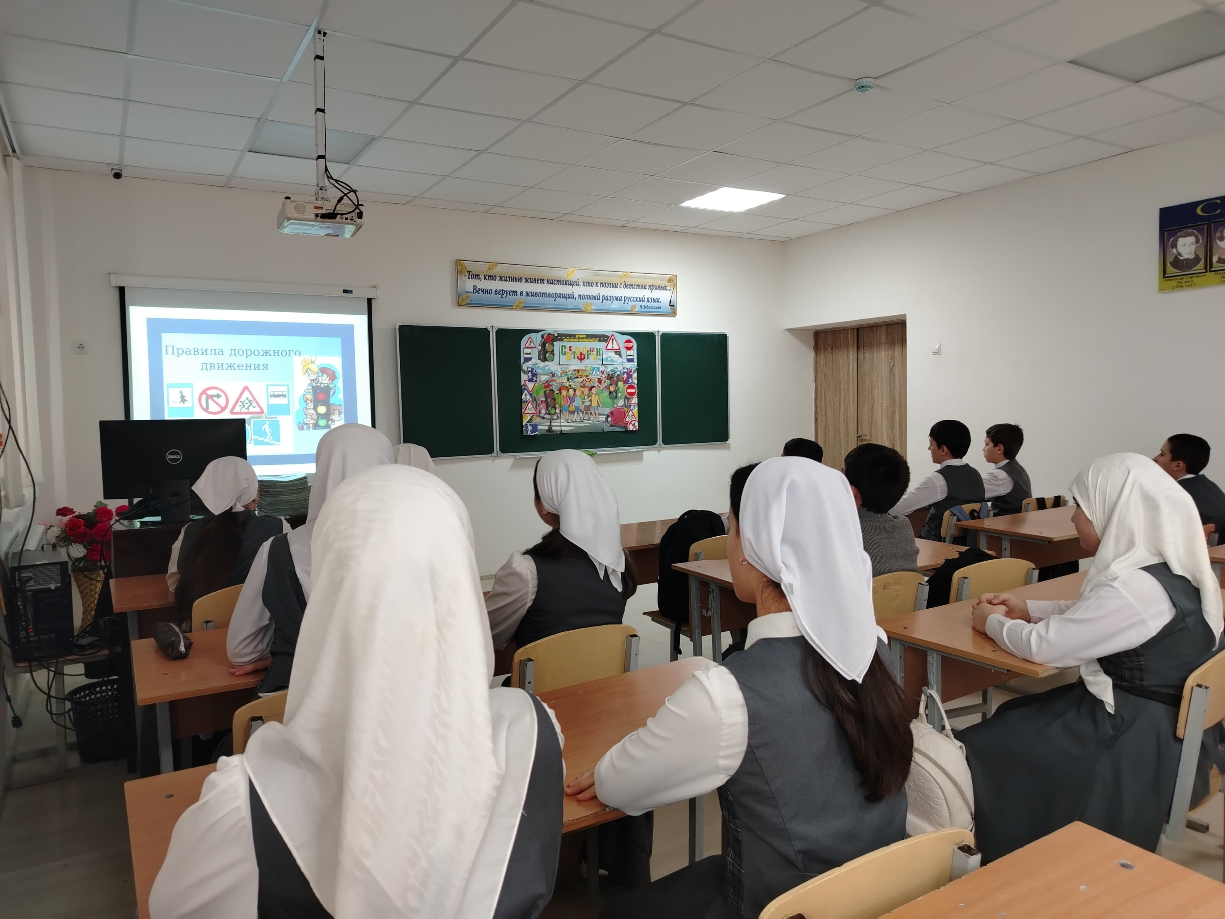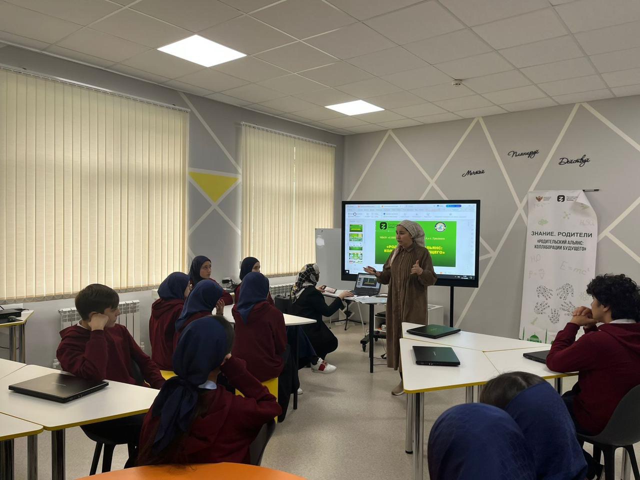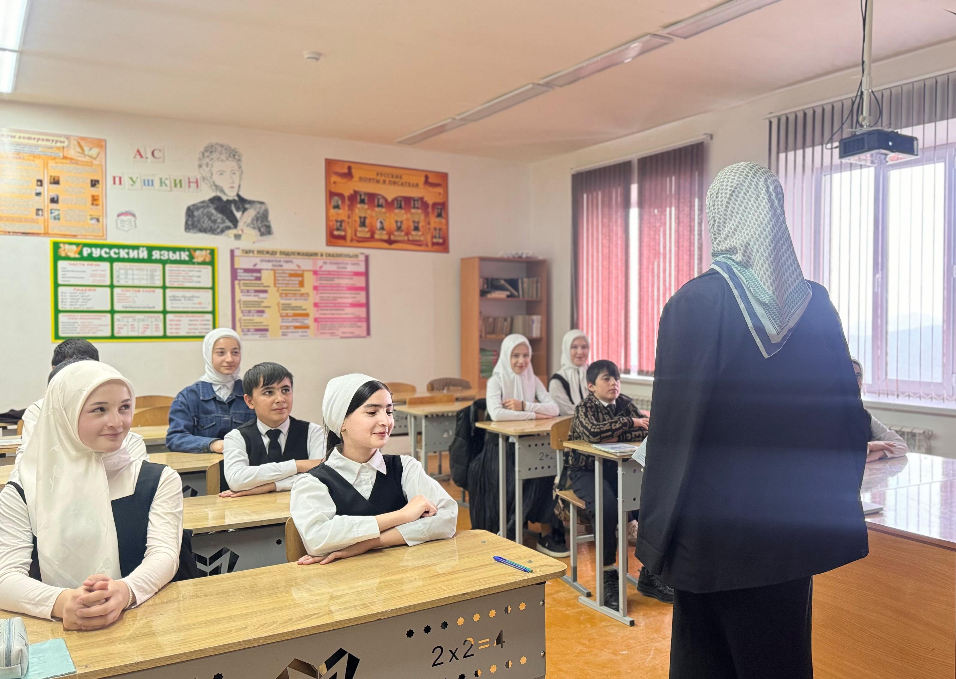 Школа рассчитана на 720 мест, находится в с. п. Знаменское Надтеречного района Чеченской Республики. Занятия проводятся в одну смену.