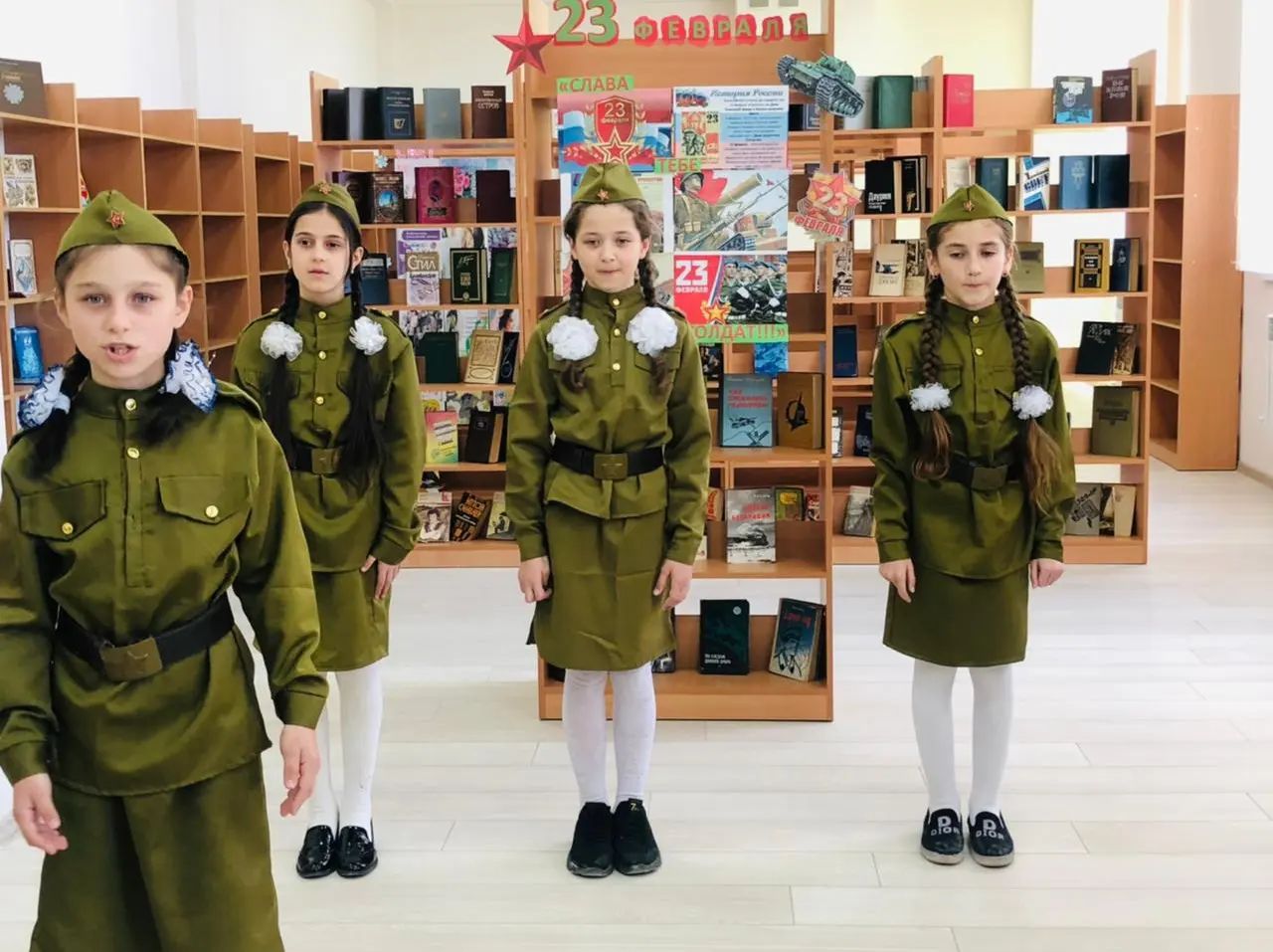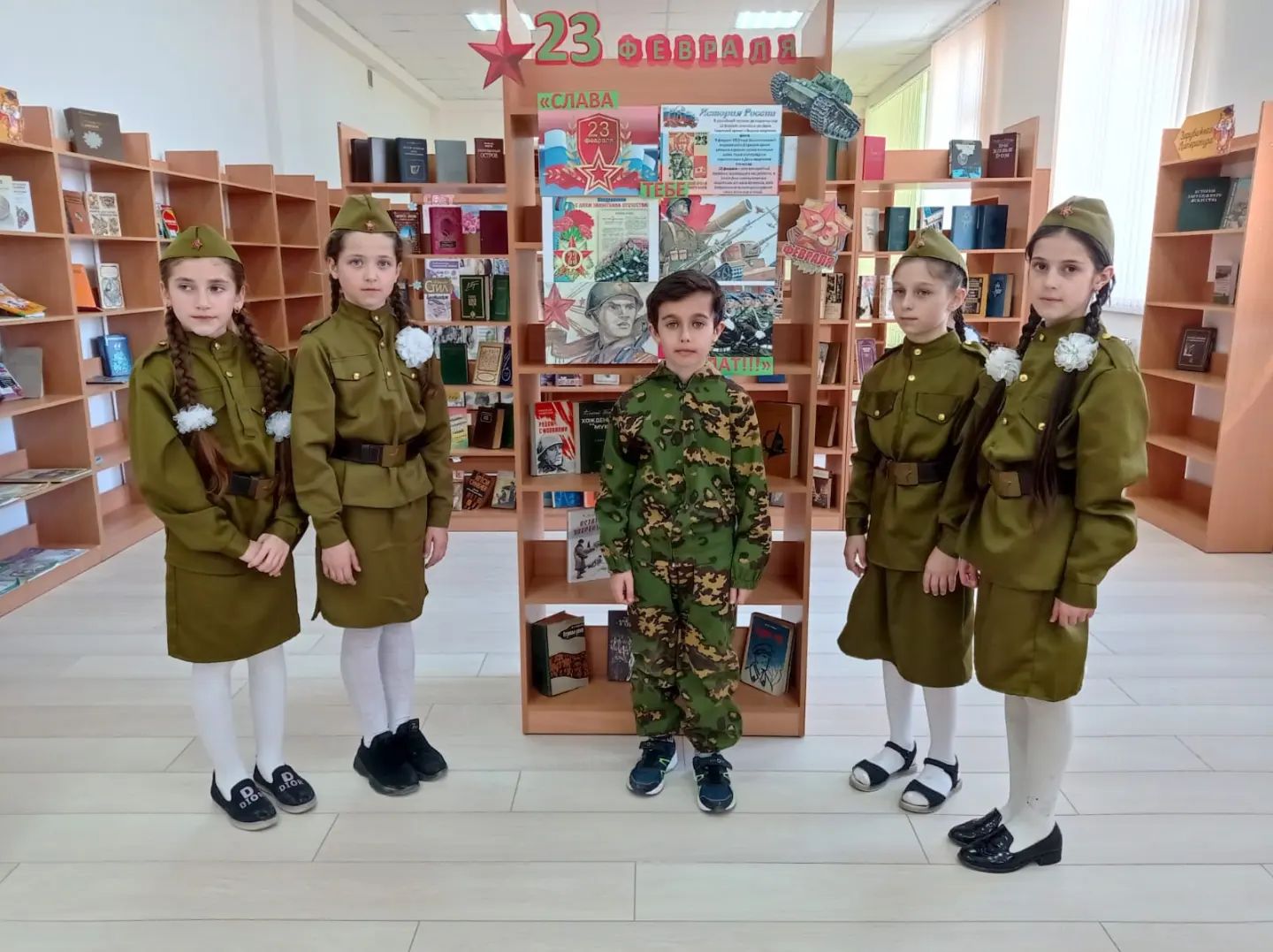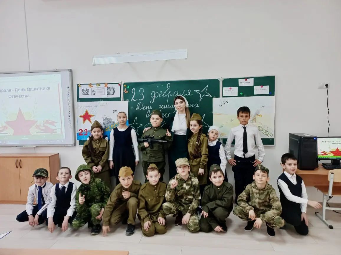 В честь праздника были организованы следующие мероприятия:- конкурс рисунков и поделок;- классные часы;- книжная выставка;- песни и стихи на военную тематику.Цель: развитие нравственно-патриотического воспитания школьников.