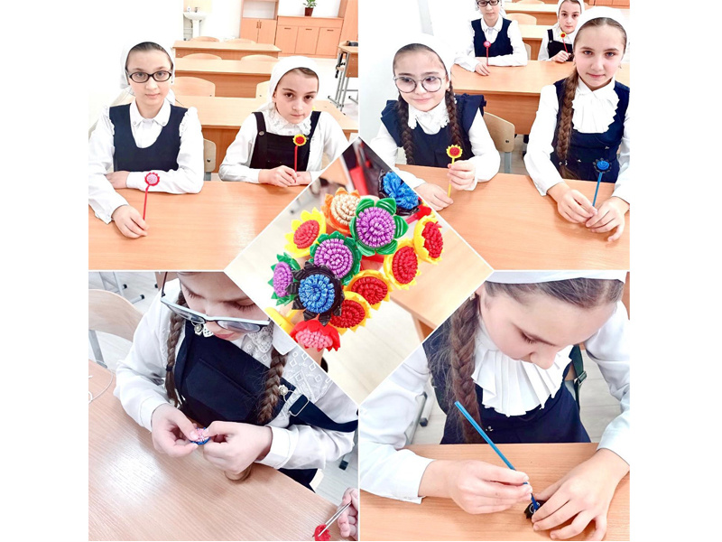 Урок: цветы своими руками.Руководитель кружка - Эльмурзаева Х.Ш.Цель: воспитывать интерес и любовь к ручному творчеству, вовлекать детей в активную творческую деятельность, сформировать навыки и умения работы с материалами различного происхождения; обучить изготавливать поделки из различных материалов.