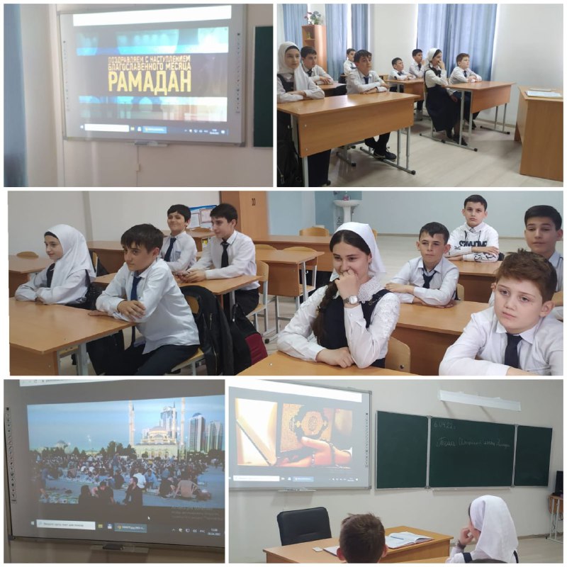 В 6 "Б" классе прошёл классный час. Марша ба хьо Рамадан. Цели: Закрепить знания детей о традициях соблюдения поста у мусульман.