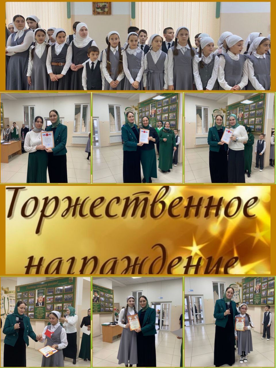 После церемонии поднятия государственных флагов РФ и ЧР, директор школы Исраилова Р.Х. вручила грамоты: