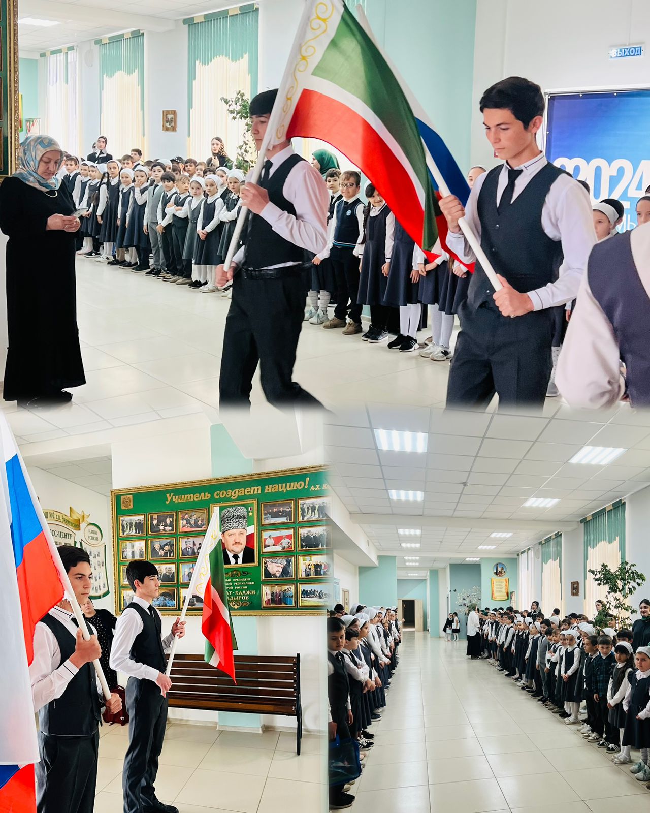 Почетное право поднять государственные флаги РФ и ЧР предоставили ученикам 8-9-х классов.