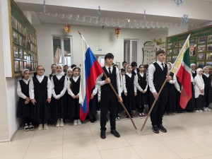 В МБОУ «СОШ 2 с.п. Знаменское» состоялось официальное открытие учебной недели третьей четверти с торжественной церемонией поднятияГосударственных флагов и исполнения гимнов Российской Федерации и Чеченской Республики.